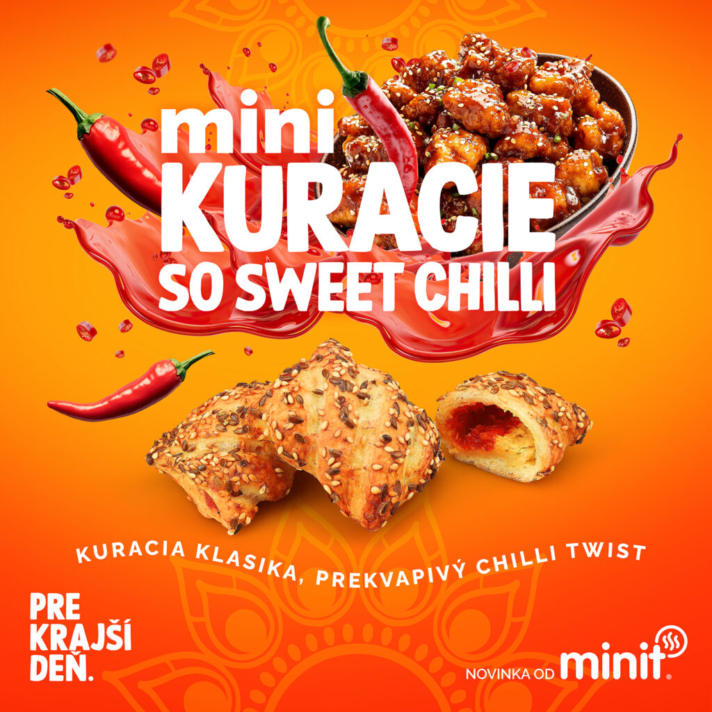 Vo vitrínach MINIT pekárničky v našom OC na vás čakajú originálne minitky plné šťavnatého kuracieho 🍗 mäsa a jemne pikantnej 🌶️ sweet chilli omáčky.